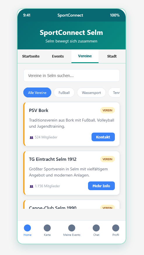 Bei der Podiumsdiskussion des Stadtsportverbands habe ich gezeigt, wie moderne, digitale Lösungen in Selm aussehen könnten. Die SportConnect‑App ist dafür ein Beispiel – kein fertiges Projekt, sondern ein Prototyp, der zeigt, wie wir Vereine, Bürger und Stadt smarter vernetzen können.